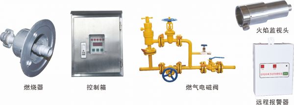 該裝置主要由燃燒器、火焰監(jiān)視頭、控制箱、燃?xì)怆姶砰y、遠(yuǎn)程報警器組成。